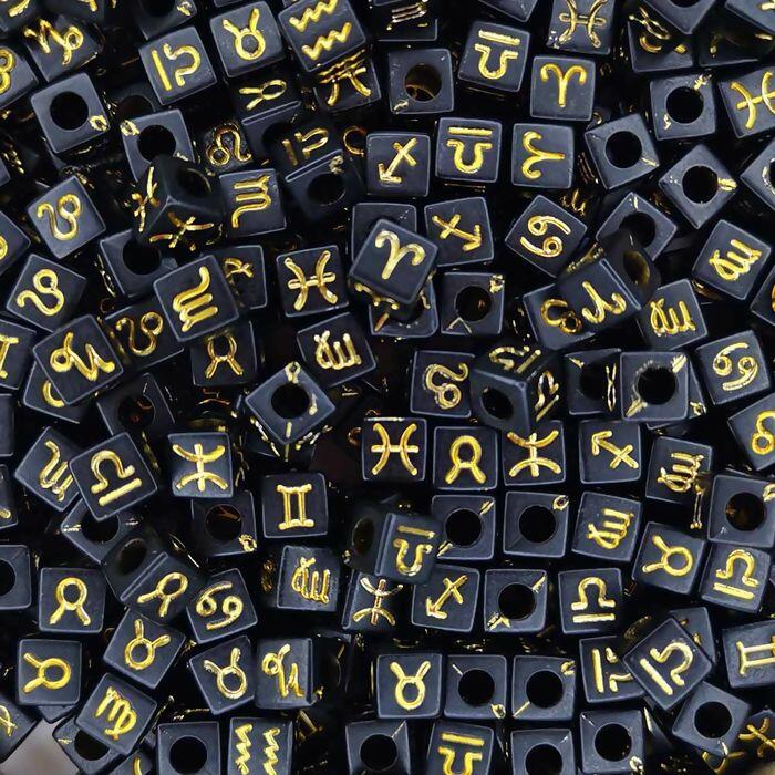 Miçanga cubo com simbolos do zodíaco (signo) estampadas para confecção de bijuterias como colares, pulseiras, bolsas, braceletes, chaveiros e outros diversos tipos de decorações.