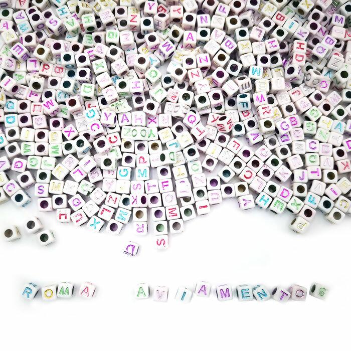 Miçanga cubo de letras metalizadas ideal para confecção de bijuterias como colares, pulseiras, bolsas, braceletes, chaveiros e outros diversos tipos de decorações.