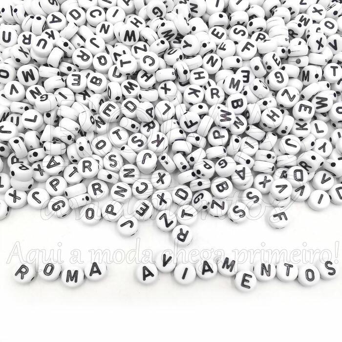 Aqui na Roma Aviamentos você encontra miçangas de letrinhas que costuma ser usado para enfeitar colares, pulseiras, anéis, brincos, chokers, gargantilhas, enfeitar cadarços e ou qualquer ornamento, e são reconhecíveis por serem dotados de um pequeno furo no centro para rosqueamento ou encordoamento.
