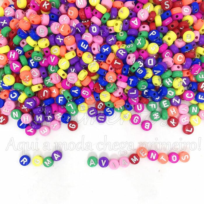 Aqui na Roma Aviamentos você encontra miçangas de letrinhas que costuma ser usado para enfeitar colares, pulseiras, anéis, brincos, chokers, gargantilhas, enfeitar cadarços e ou qualquer ornamento, e são reconhecíveis por serem dotados de um pequeno furo no centro para rosqueamento ou encordoamento.