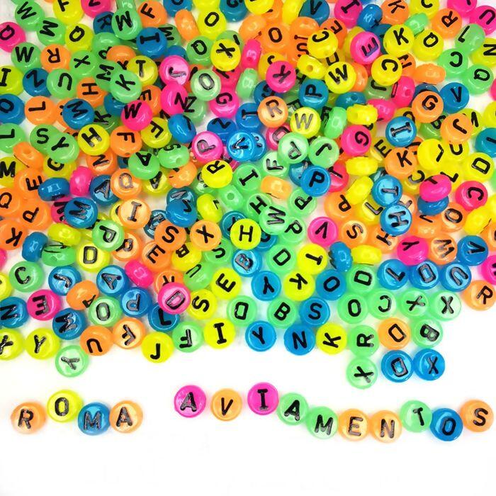 Miçanga Redonda de letras para confecção de bijuterias como colares, pulseiras, bolsas, braceletes, chaveiros e outros diversos tipos de decorações.