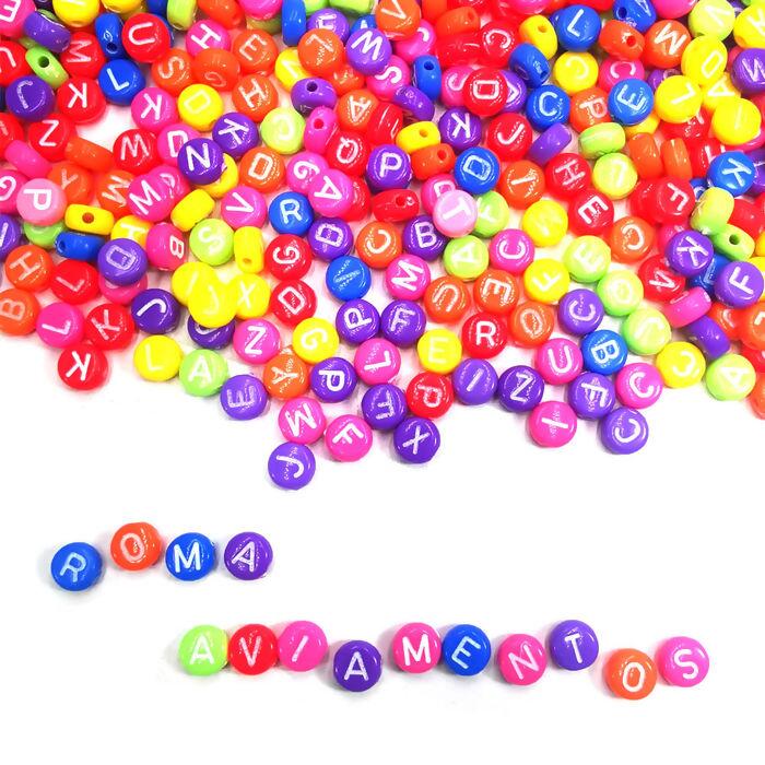 Aqui na Roma Aviamentos você encontra miçangas de letrinhas que costuma ser usado para enfeitar colares, pulseiras, anéis, brincos, chokers, gargantilhas, enfeitar cadarços e ou qualquer ornamento, e são reconhecíveis por serem dotados de um pequeno furo no centro para rosqueamento ou encordoamento.