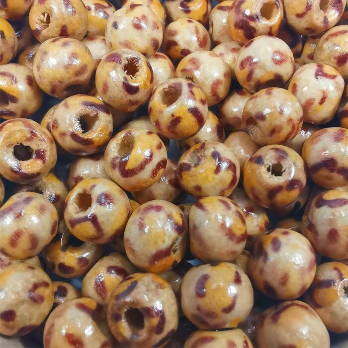 Miçanga bolinha em madeira com estampa de onça são ideais para confecção de bijuterias como colares, pulseiras, bolsas, braceletes, chaveiros e outros diversos tipos de decorações.