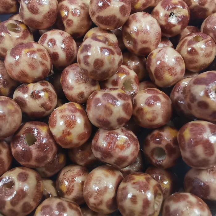Miçanga bolinha em madeira com estampa de onça são ideais para confecção de bijuterias como colares, pulseiras, bolsas, braceletes, chaveiros e outros diversos tipos de decorações.