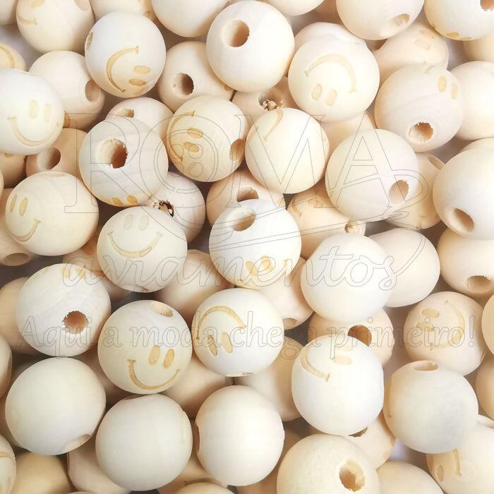 Descrição Miçanga de Madeira Smile - pacote com 100 unidades - Cru - RO.150794