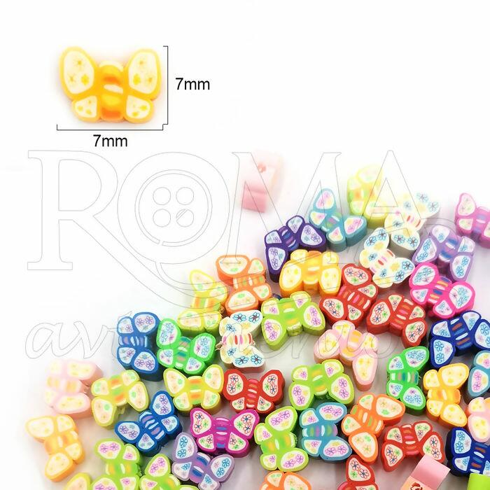Miçanga emborrachada borboleta - 50 unidades - 7mm - Sortido - 074723