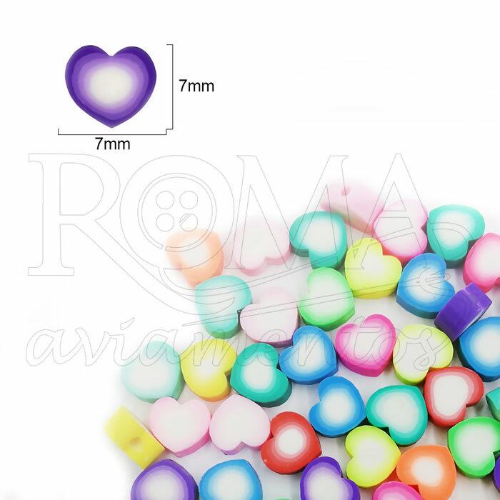 Descrição Miçanga emborrachada coração - 50 unidades - 7mm - Sortido - 074724
