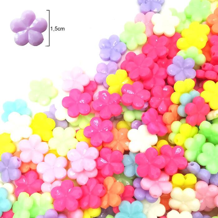 Miçanga flor plástica ideal para confecção de bijuterias como colares, pulseiras, bolsas, braceletes, chaveiros e outros diversos tipos de decorações.
