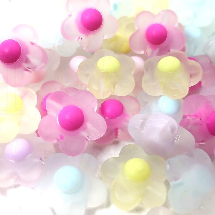 Descrição Miçanga Flor com Furo - 100g - 15mm - Sortido - 072687