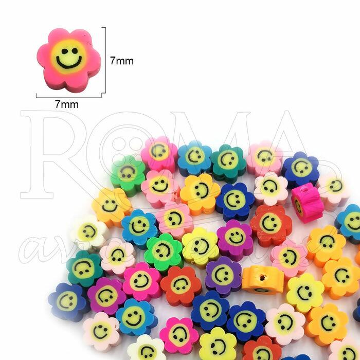 Descrição Miçanga Flor Emborrachada - 50 unidades - 7mm x 7mm - Sortido - 074722