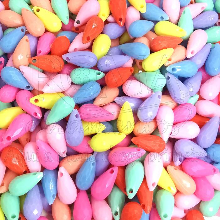 Descrição Miçanga Gota - Com Furo - c/ 500 gr 15mm - Sortidos - RO.150878