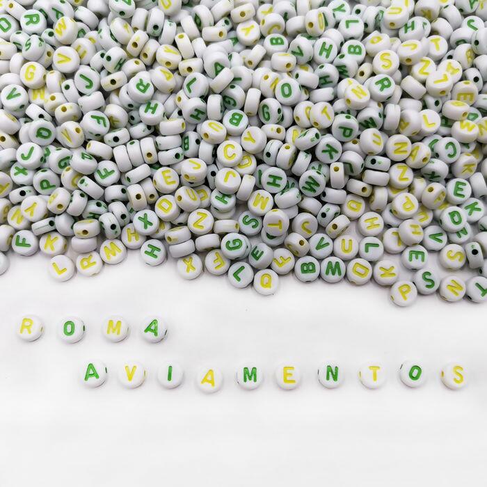 Descrição Miçanga Redonda - Letras - 4mm x 7mm - RO.151521