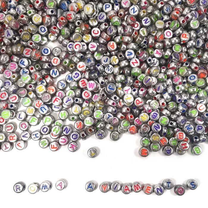 Miçanga redonda metalizada com letrinhas são ideais para confecção de bijuterias como colares, pulseiras, bolsas, braceletes, chaveiros e outros diversos tipos de decorações.