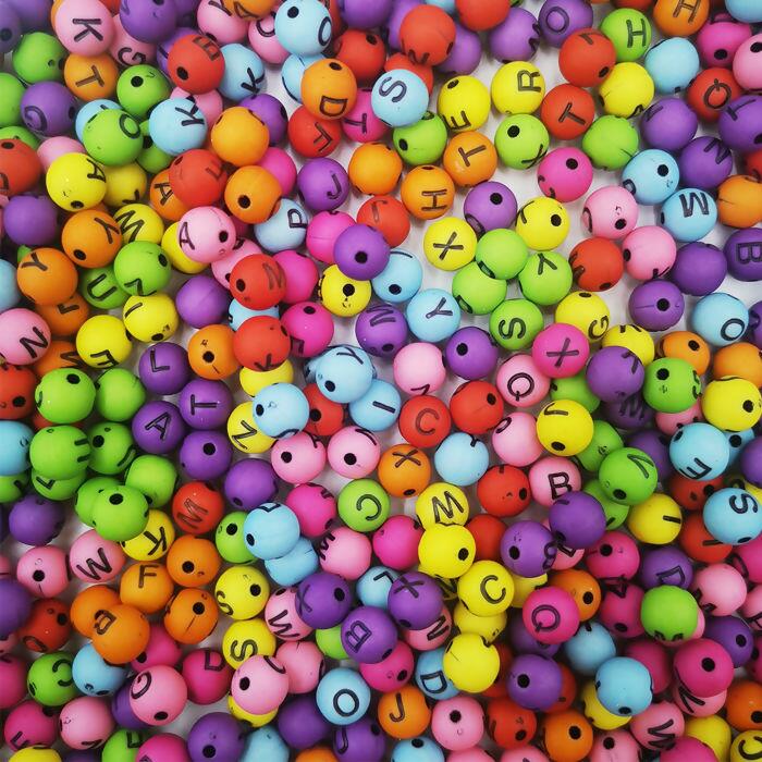 Descrição Miçangas coloridas Bolinha - Letras - Com Furo - 500 gramas - 10mm - Sortido Escuro