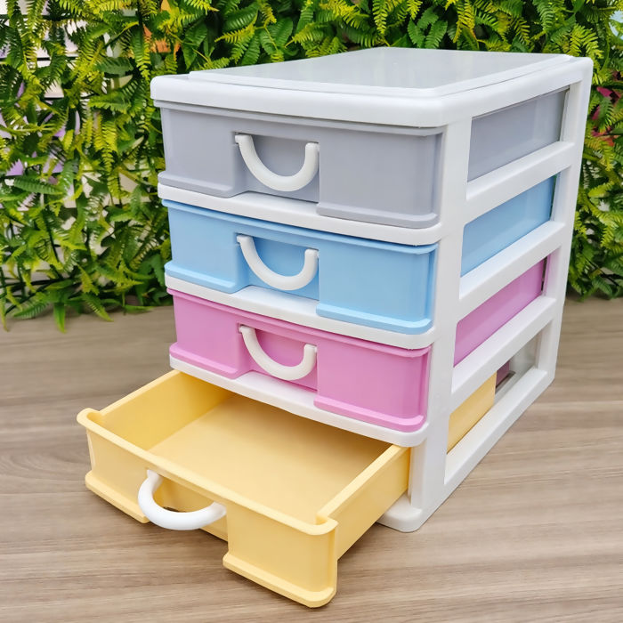 O Mini Gaveteiro 4 Gavetas é perfeito para quem precisa de mais organização em pouco espaço. Fabricado em 100% plástico resistente, une funcionalidade, cores suaves e um visual moderno que valoriza qualquer ambiente.