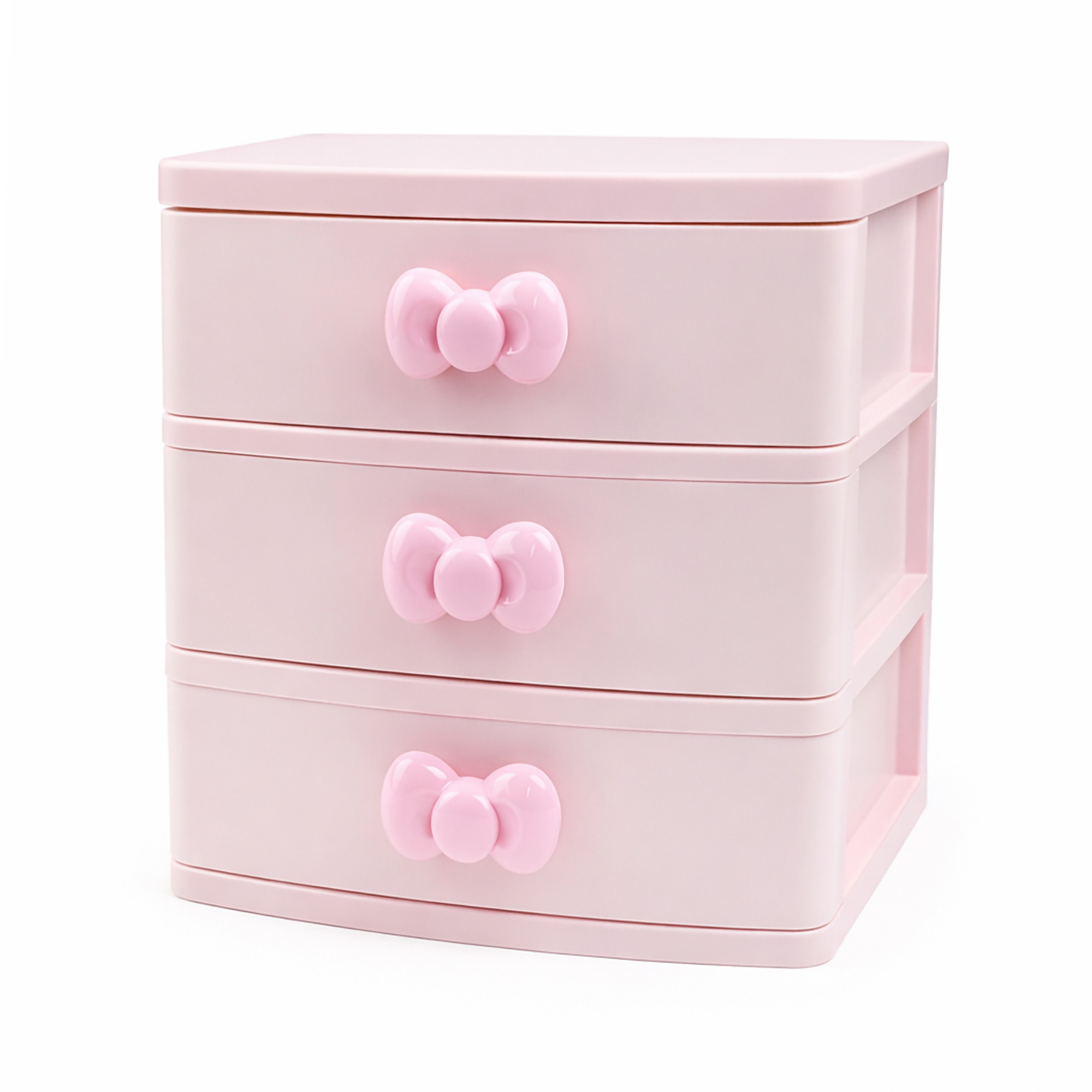 Delicado no visual e eficiente na organização, o mini gaveteiro com laço rosa é aquele item que encanta à primeira vista e resolve no uso diário. Compacto, funcional e cheio de charme, ele organiza sem ocupar espaço.
