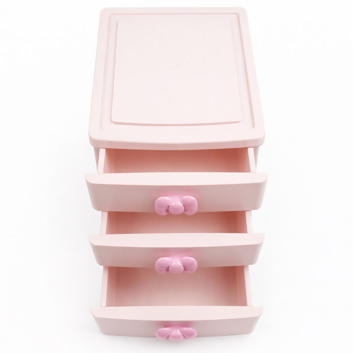 Descrição Mini gaveteiro Laço Rosa 3 gavetas 13,2cm x 17,2cm x 15,5cm UT.1272