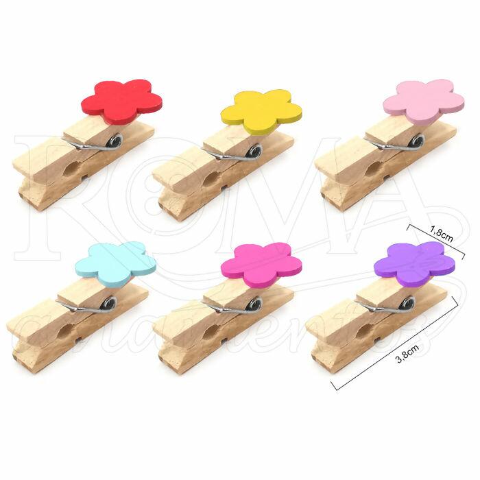 Descrição Mini Prendedor com Flor - 100 unidades - 1,8cm x 3,8cm - Sortido - RO.151134