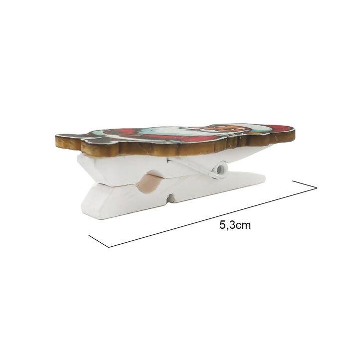 O Mini Prendedor de Natal no modelo Papai Noel é um detalhe criativo e encantador para sua decoração natalina. Produzido em madeira pintada, possui 5,3 cm e acabamento em mola metálica, garantindo praticidade e resistência.