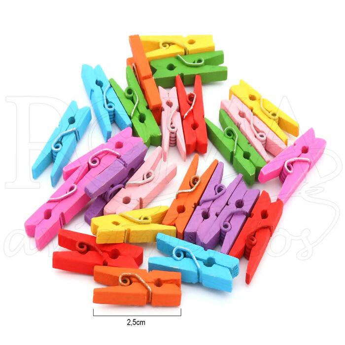 Descrição Mini Prendedor Madeira - 100 unidades - 2,5cm - Diversos - RO.150121