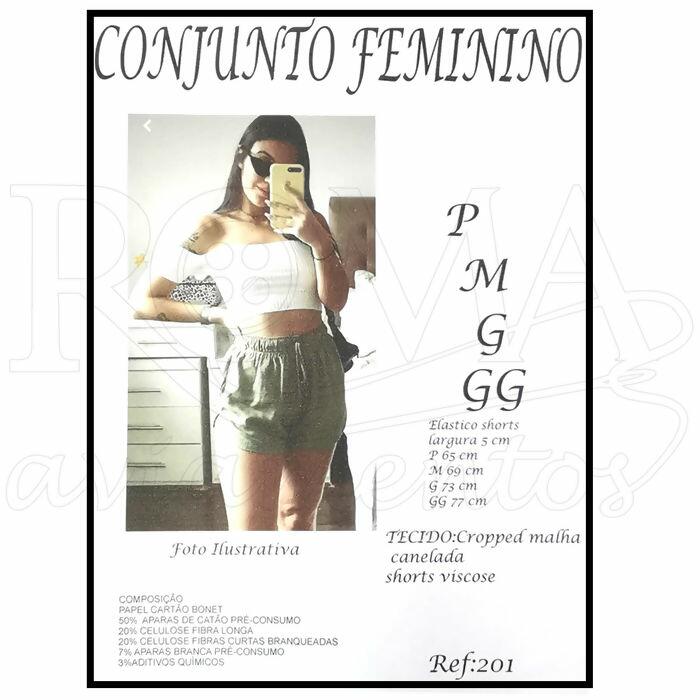 Tecidos: Cropped Malha Canelada, Shorts Viscose.