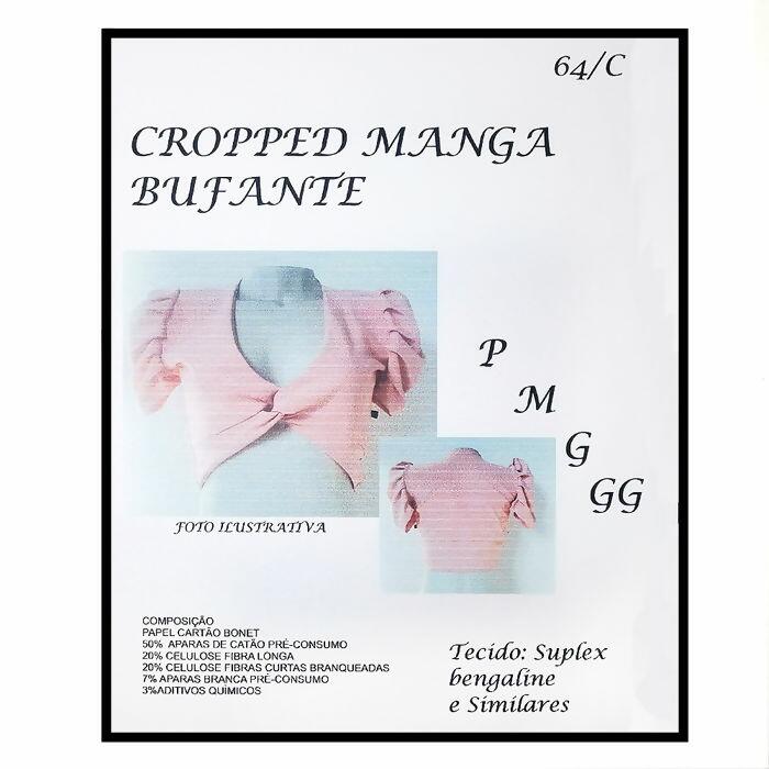 Descrição Molde N°64/C - Cropped com manga bufante - P - M - G e GG