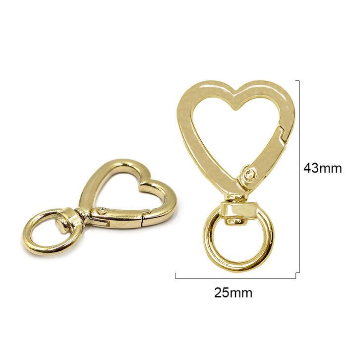 Descrição Mosquetão Coração - 43mm x 25mm - Dourado Claro - RO.151502