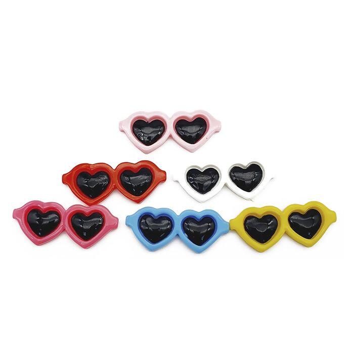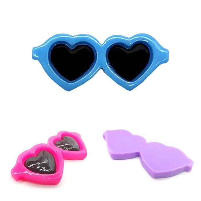 Os óculos de sol em formato de coração para amigurumi são acessórios delicados e criativos que deixam suas peças artesanais ainda mais charmosas. Feitos em plástico colorido, eles possuem lentes pretas que imitam óculos de verdade, garantindo um visual divertido e personalizado.
