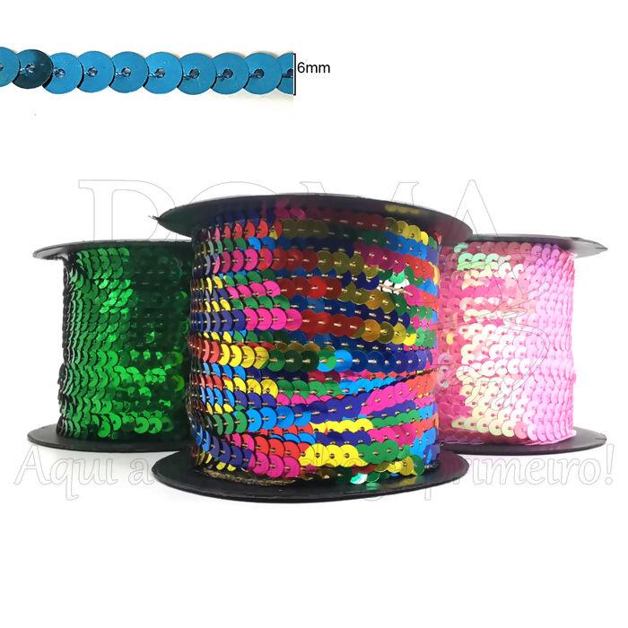 Aqui na Roma Aviamentos você encontra paete em metro que são paetes conectados por um fio, perfeito para confecção de roupas para festas e casual chic tais como saias, vestidos, blusinhas, calças, casacos e outros diversos tipos de decoração. Nossos paetes são bem radianetes e posuem brilhos radiantes.