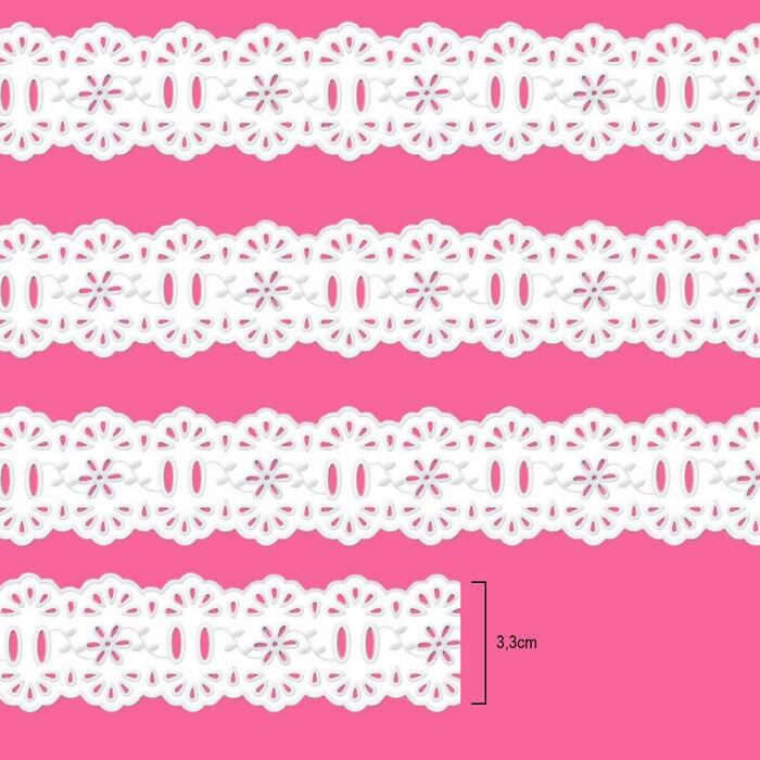 Descrição Passa fita big crochê Mod.63 bco 10m X 3,3cm 70%pol. 30% alg. - 19242