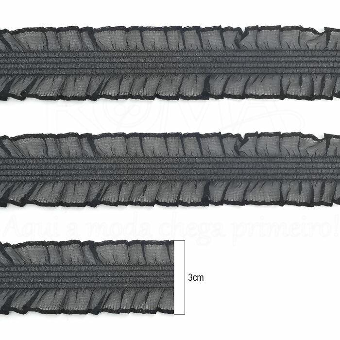Passamanaria com Babado - 3cm x 15y - Preto - RO.150689