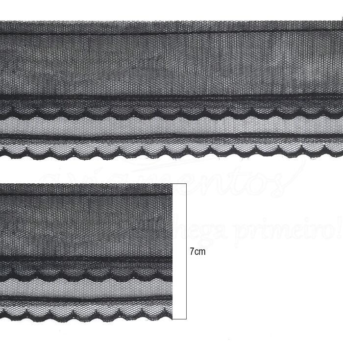 Descrição Passamanaria com Babado - 7cm x 15y - Preto - RO.150703