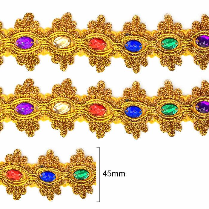 Descrição Passamanaria com Chaton - 45mm x 8,5m - Dourado/ Multicor - RO.151716