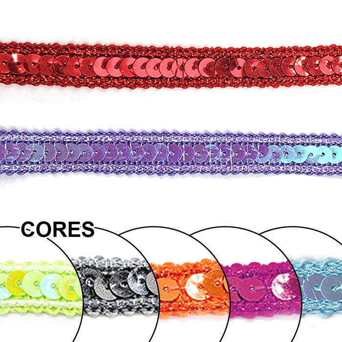 Aqui na Roma Aviamentos você encontra diversos tipos de passamanarias, seja ela em variadas cores como dourada, verde, rosa, e uma gama de composições como paete, algodão e muito mais. Está passamanaria possui paete e uma borda super trabalhada para dar aquele toque especial na sua peça.