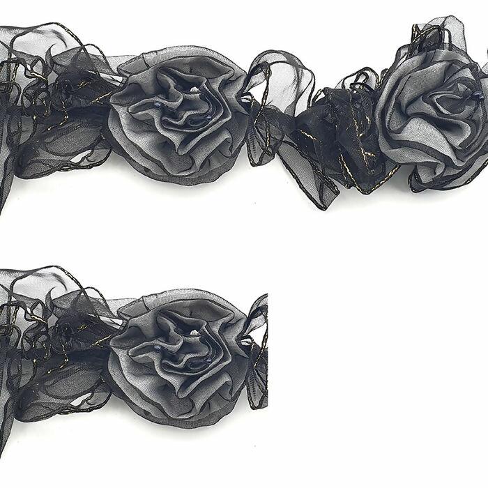 Detalhe Passamanaria Flor - 7cm x 10y - Preto - RO.689