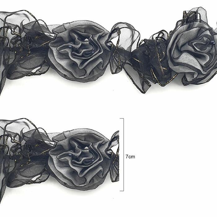Passamanaria Flor - 7cm x 10y - Preto - RO.689