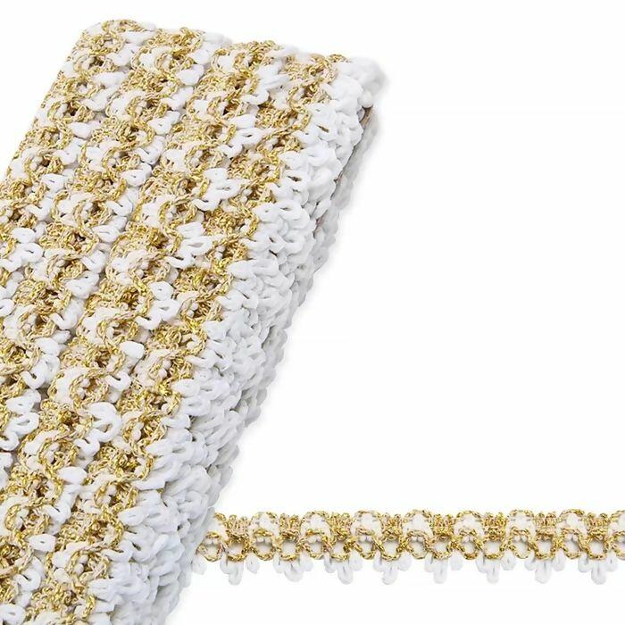 Passamanaria Metalizada - São José - 1,7cm x 10m - Branco/Dourado - 8300