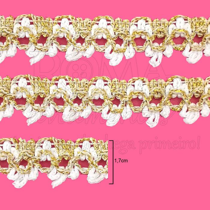 Descrição Passamanaria Metalizada - São José - 1,7cm x 10m - Branco/Dourado - 8300