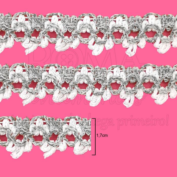 Descrição Passamanaria Metalizada - São José - 1,7cm x 10m - Branco/Prata - 8300