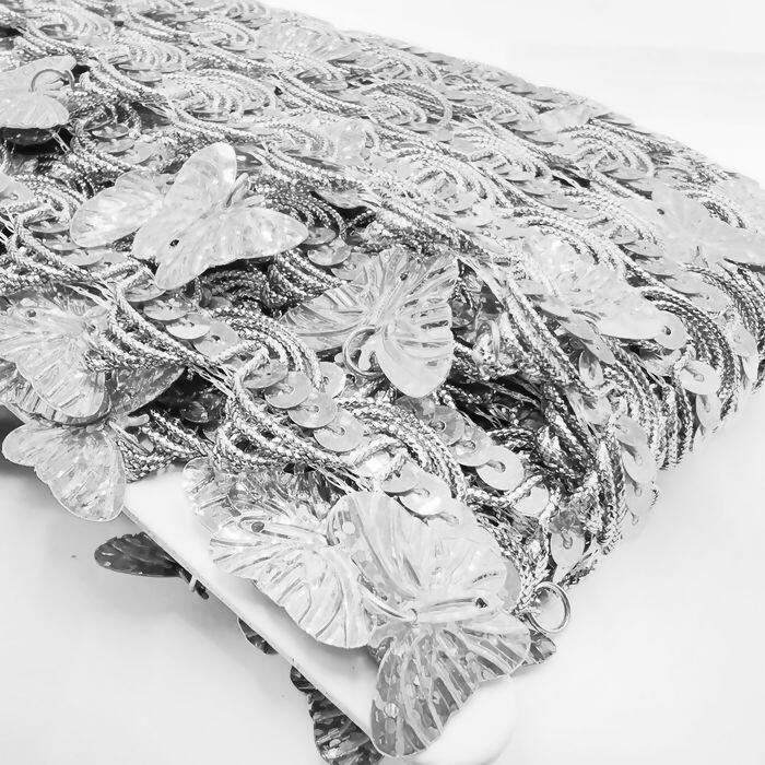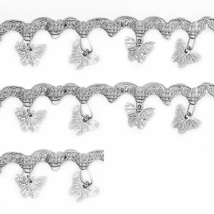 Detalhe Passamanaria Metalizada com Borboleta - 30mm x 13,7m - Prata - RO.151719