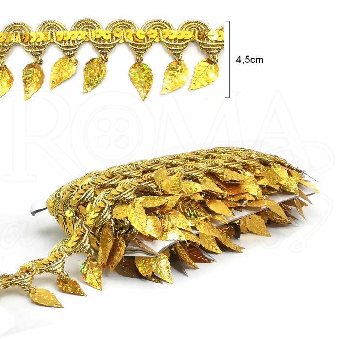 Passamanaria Metalizada com Folhas - 4,5cm x 15y - Dourado - RO.151189