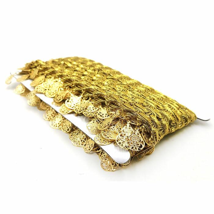 Descrição Passamanaria Metalizada com Pingente - 40mm x 15y - Dourado - RO.151854