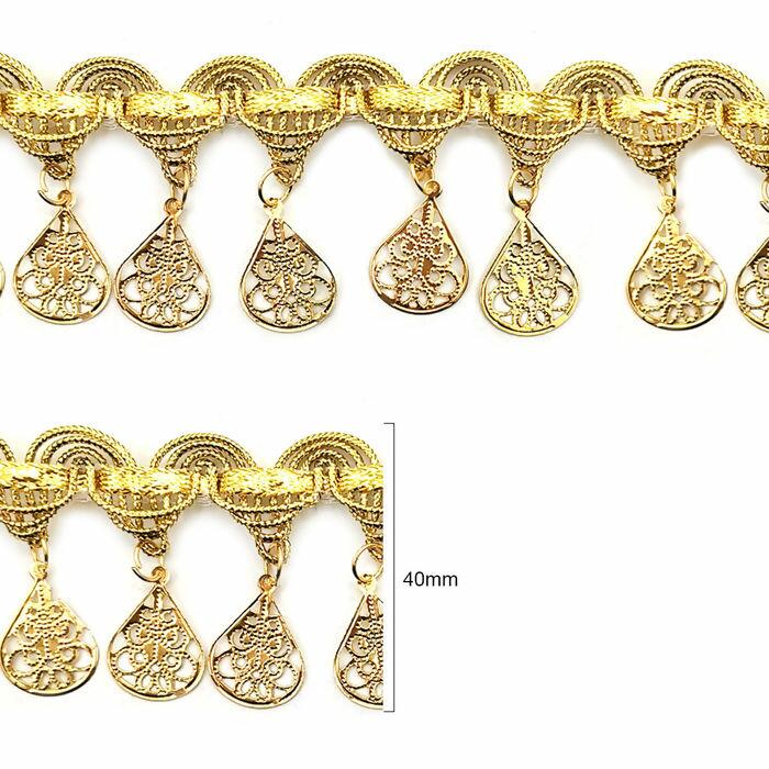 Detalhe Passamanaria Metalizada com Pingente - 40mm x 15y - Dourado - RO.151854