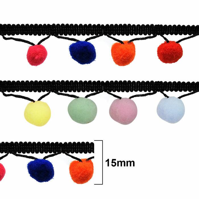 Passamanaria Pompom - 15mm x 18m - Preto/Multicor - RO.80137