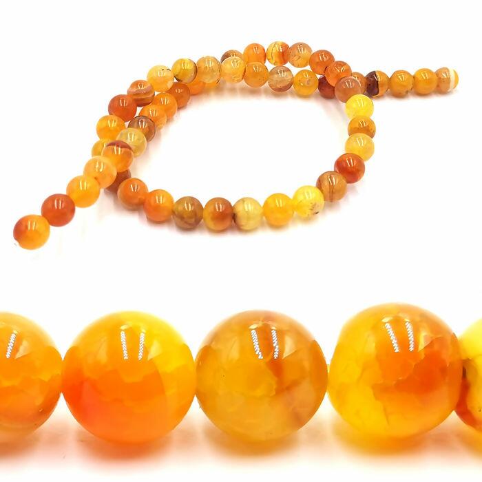 Pedra Natural Bolinha - Orange Dragon Patterned Agate