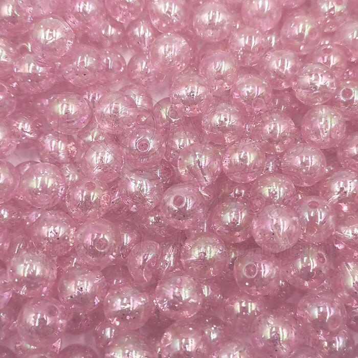 Pérola com glitter acrilica - com furo - 100 gramas - Rosa BB - RO.150343