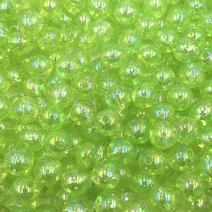 Pérola com glitter acrilica - com furo - 100 gramas - Verde BB - RO.150343