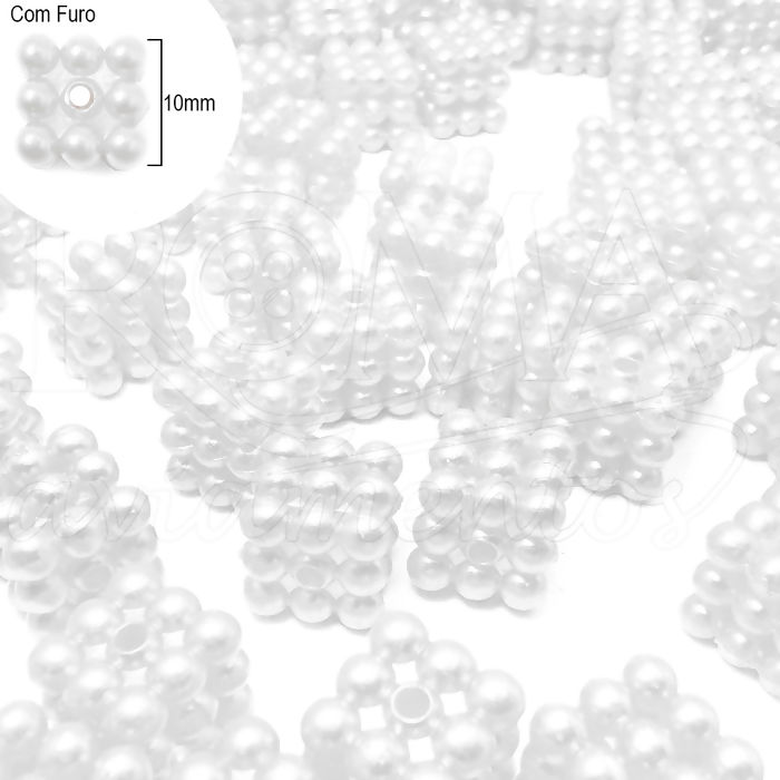 Descrição Pérola Craquelada Quadrada com Furo - 10mm - Branco - RO.151209