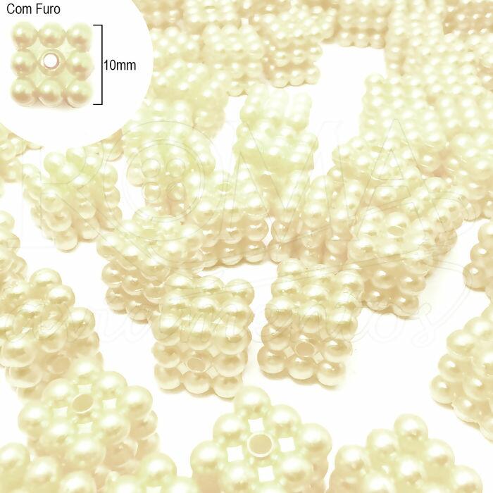 Descrição Pérola Craquelada Quadrada com Furo - 10mm - Creme - RO.151209