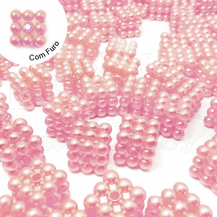 Pérola Craquelada Quadrada com Furo - 10mm - Rosa BB 080 - RO.151209